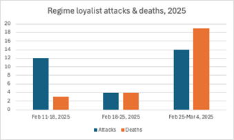 Violence rises in late February and early March, but with kidnappings still low or absent in the four provinces concerned, and a surge of Assadist attacks, it is clear where the new violence was coming from.