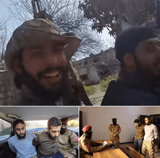 The Military Police also arrested these two MOD fighters below on March 10, after a video of them committing “bloody violations of civil rights in a coastal village went viral.” They were “transferred to the special military court.” Second image is video of the March 9 arrest of “Hussein Wassouf and his group” accused of committing crimes against civilians.